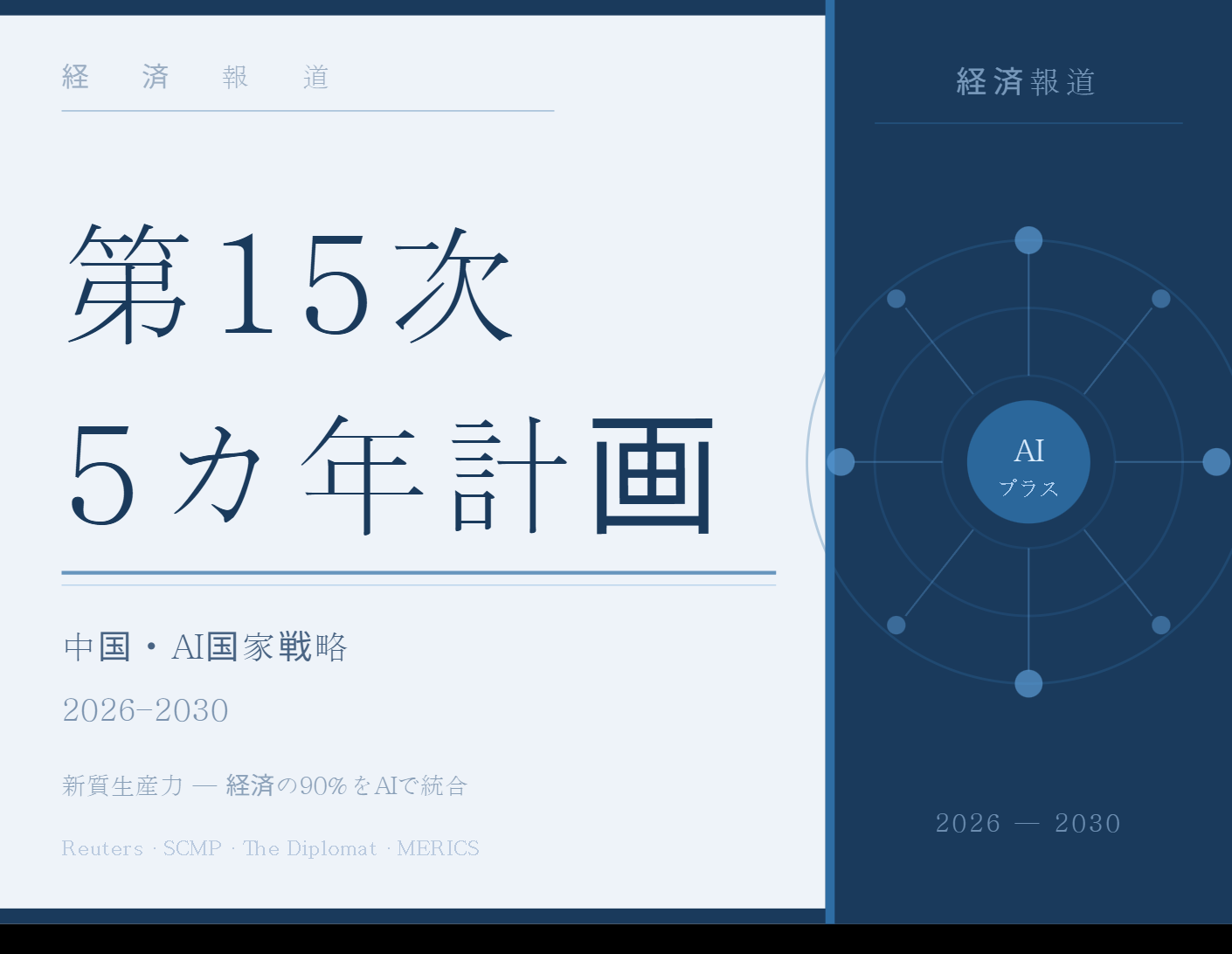 中国が2026年から2030年にかけての第15次5カ年計画において、人工知能(AI)を経済全体に組み込むとともに、身体化知能(ロボットAI)・6G・量子技術・ブレイン・コンピューター・インターフェース(BCI)を次世代の国家戦略産業に正式指定したと、ロイター、サウスチャイナ・モーニング・ポスト(SCMP)、CNN、ザ・ディプロマットなど欧米主要メディアが一斉に報じた。