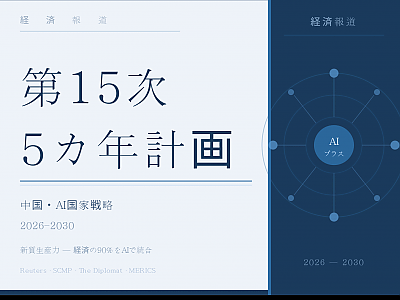 中国が2026年から2030年にかけての第15次5カ年計画において、人工知能(AI)を経済全体に組み込むとともに、身体化知能(ロボットAI)・6G・量子技術・ブレイン・コンピューター・インターフェース(BCI)を次世代の国家戦略産業に正式指…